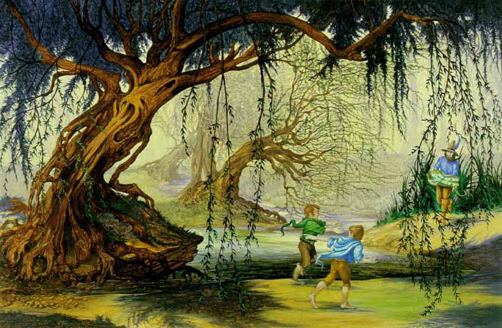 con los Hobbits, que se salvaron gracias a la ayuda de Tom Bombadil.